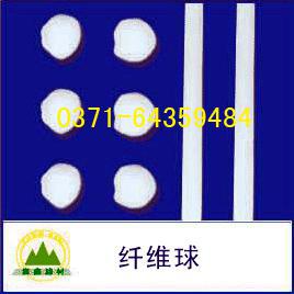 纖維球是以纖維球直徑的長度為節(jié)距,用細繩將纖維絲束扎起來,在扎接中間的中央處切斷纖維絲束,形成大小一致的球狀纖維濾料。特點是彈性好、耐機械變形。